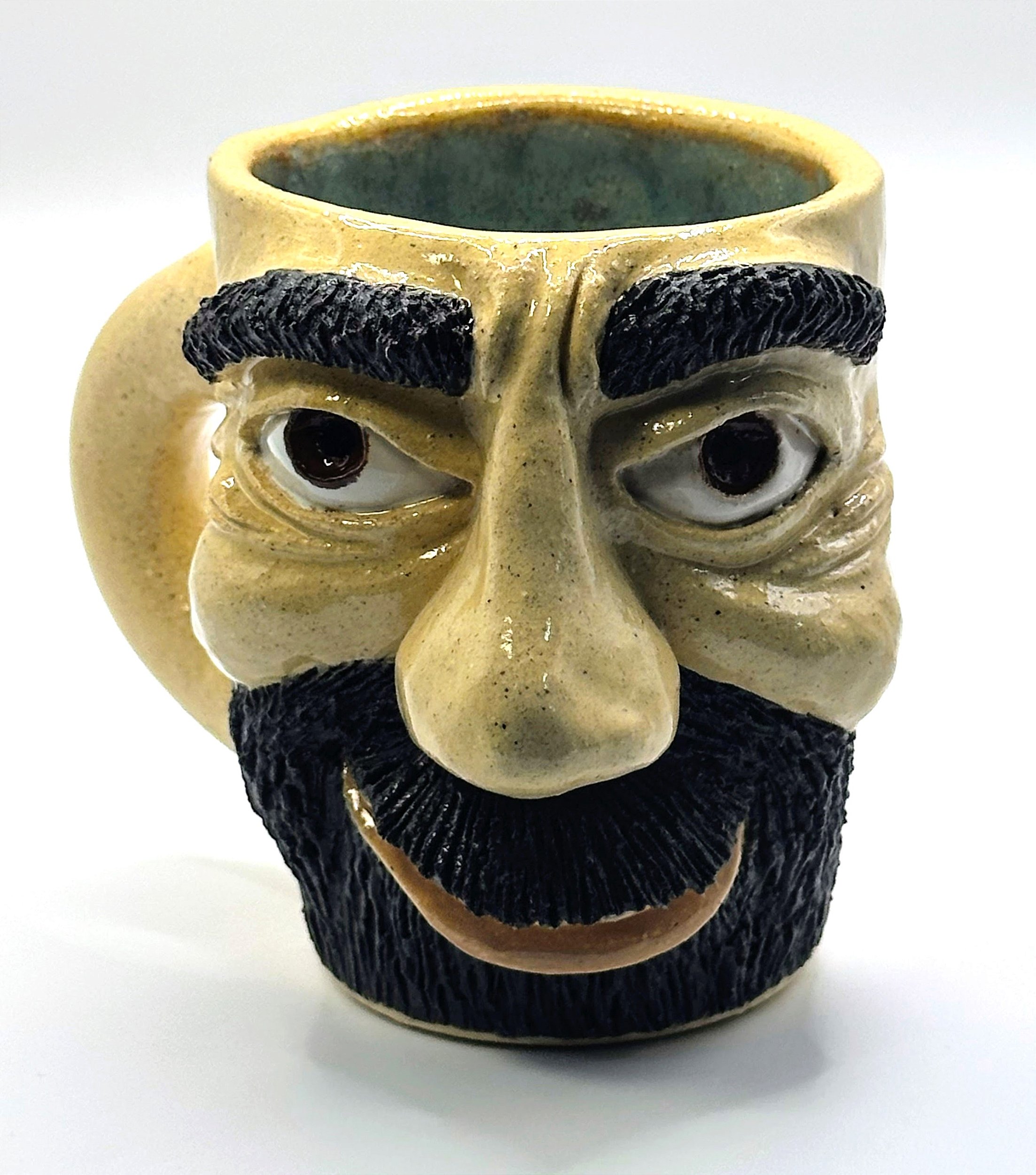 Caneca Artesanal de Cerâmica com Rosto Barbudo e Simpático Esculpido