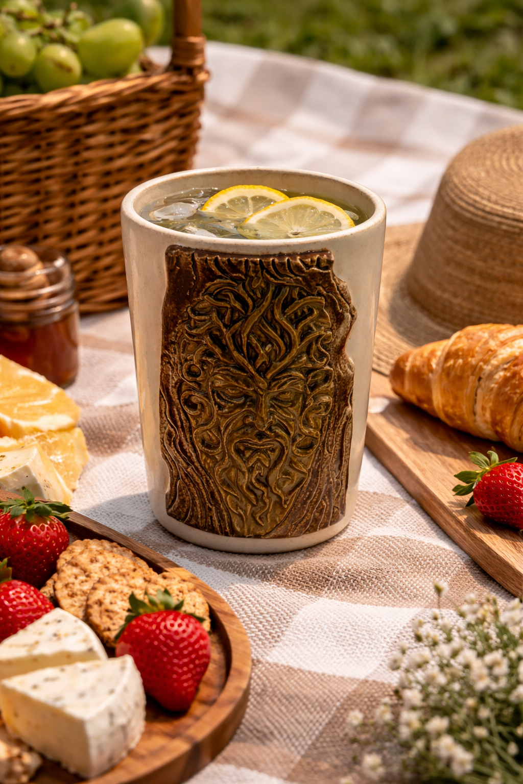 Apresentamos o copinho artesanal em cerâmica com relevo inspirado na força e sabedoria da natureza — uma peça única, cheia de personalidade e significado