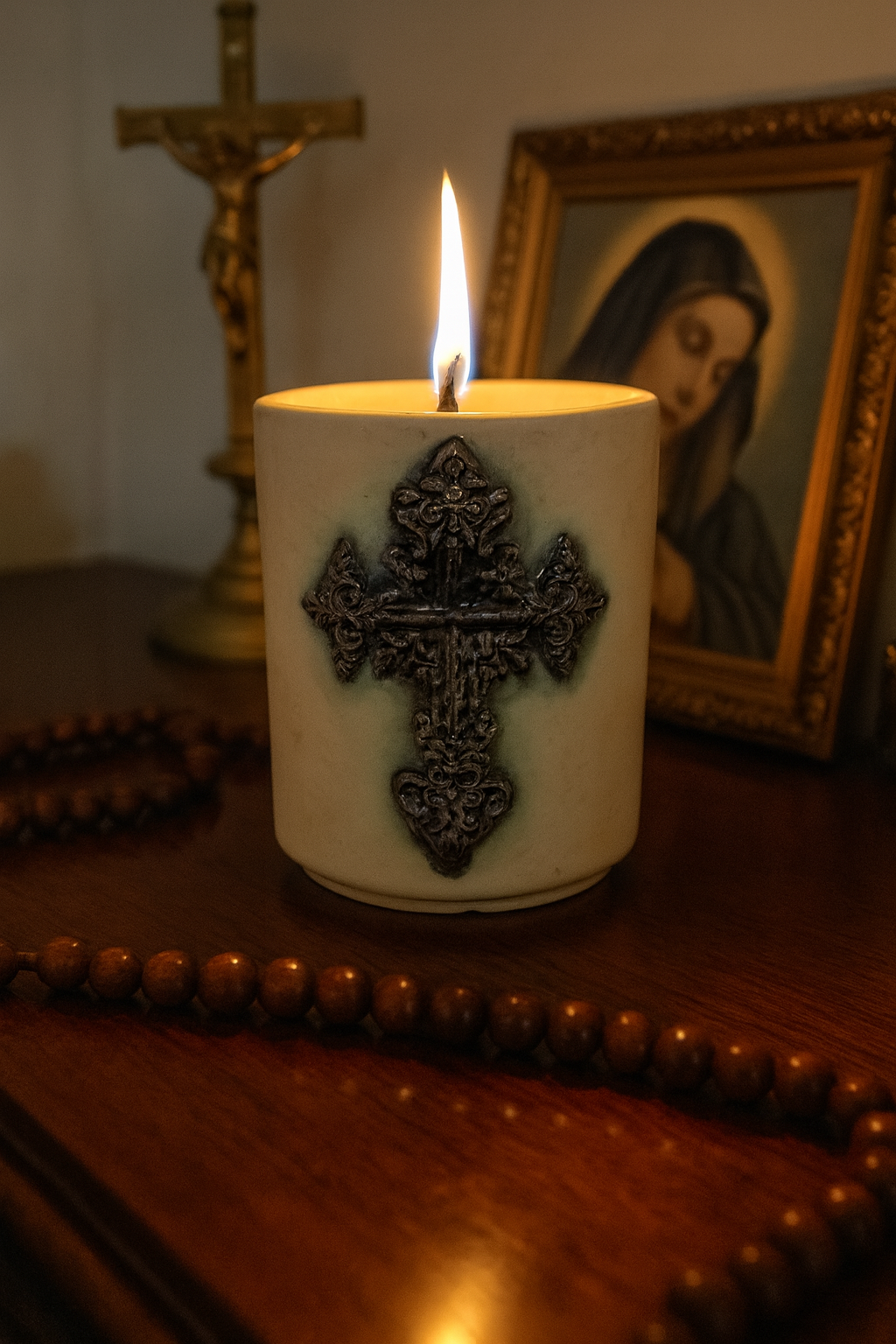 • Acabamento suave e elegante, perfeito para altares, mesas ou cantinhos de devoção