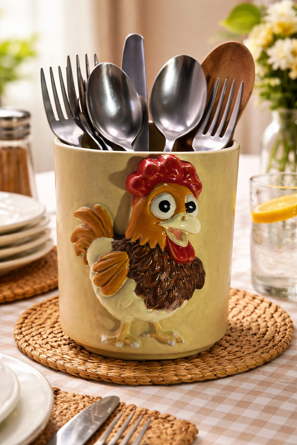 Porta Talheres em Cerâmica – Galinho Charmoso